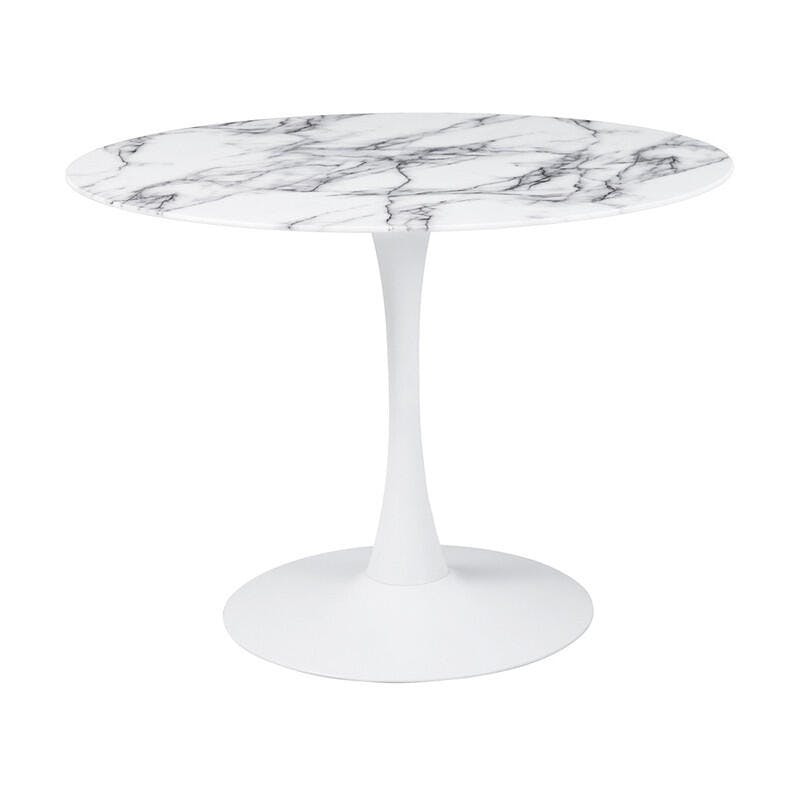 Ronde eettafel voor 4 tot 5 personen, diameter 100 cm, blad van gehard glas met marmereffect, rond wit metalen onderstel - TULIPS