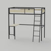 Lit mezzanine avec sommier et bureau en métal noir et mélamine imitation chêne - couchage 90 x 190 cm - DINO
