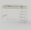 Lit mezzanine avec sommier et escalier réversible en métal blanc et mélamine imitation chêne - couchage 140 x 190 cm - MONTANA