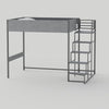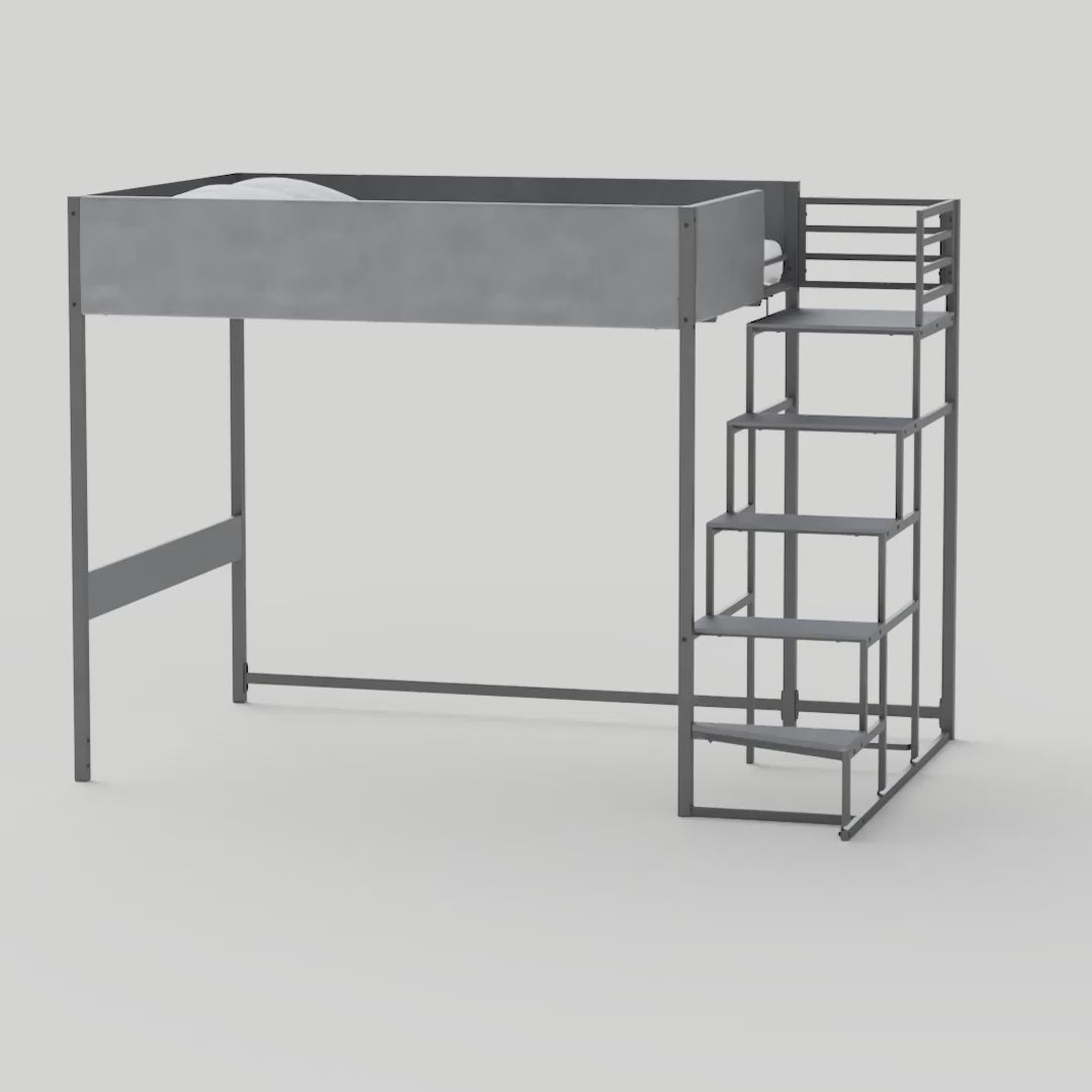 Lit mezzanine avec sommier et escalier réversible en tissu gris, métal gris et mélamine grise - couchage 140x190 cm - DOCKLAND